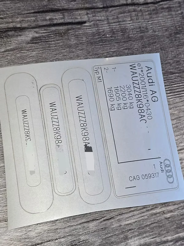 Length & Width – Example Door/Enginebay VIN Label 110MM x 46mm
